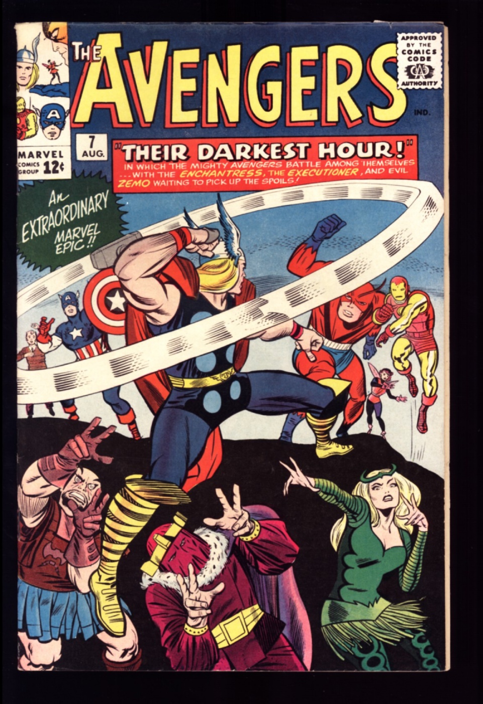 Avengers vs. Baron Zemo, the Enchantress and the Executioner cover and story by Stan Lee and Jack Kirby! Loki appears