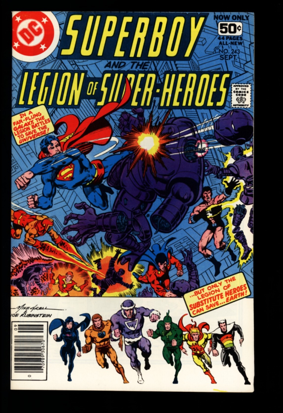 Superboy and the Legion of Super-Heroes. Legion of Substitute heroes appears , Mike Grell cover, Joe Staton art