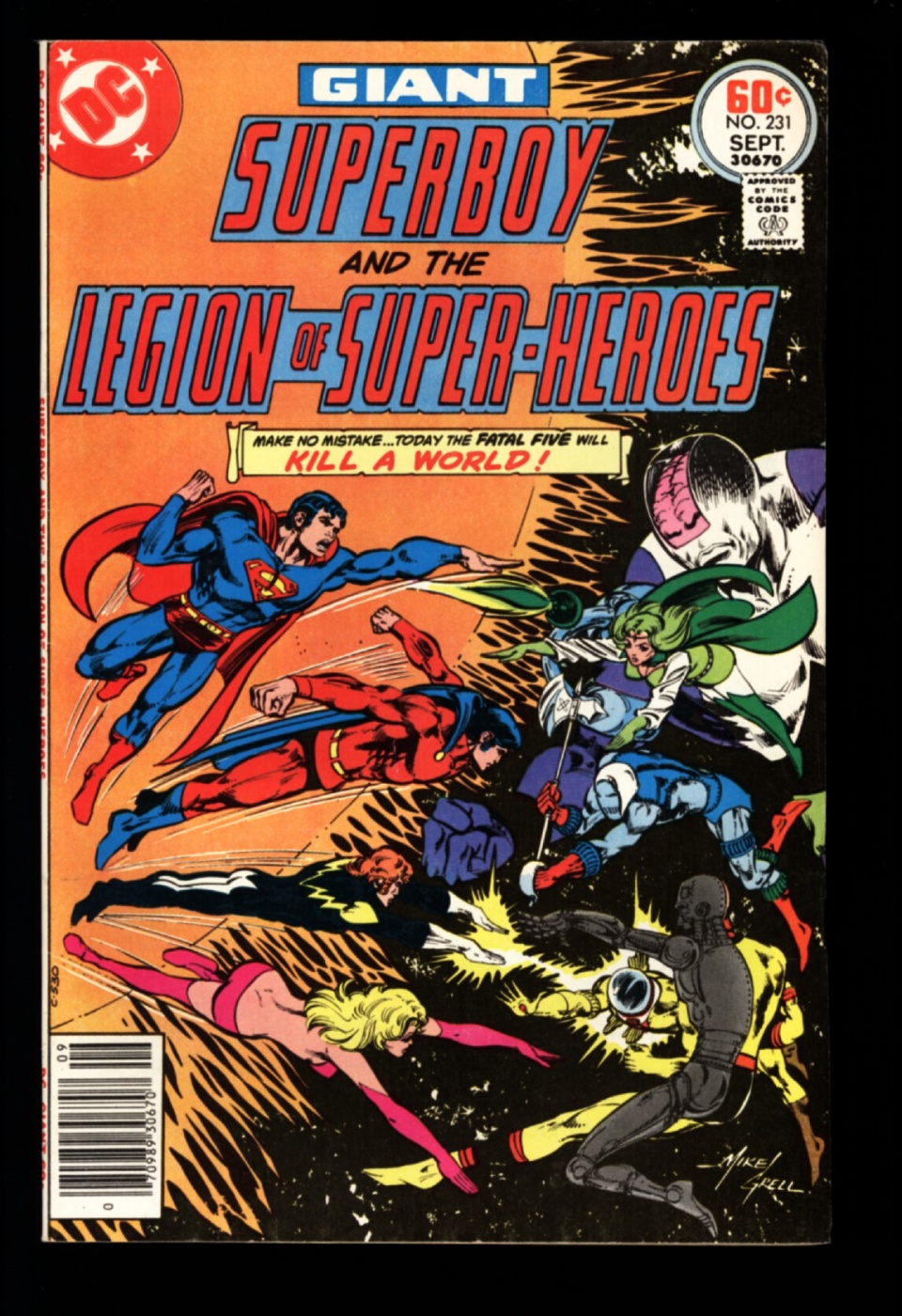 Superboy & the Legion vs the Fatal Five cover and story, Mike Grell cover