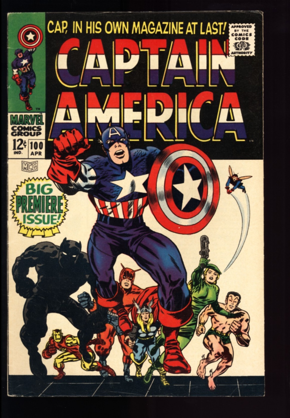 1st issue, Captain America cover and story, Avengers, Sub-Mariner, and Black Panther appears, cover and story by Jack Kirby and Stan Lee, maybe improvable